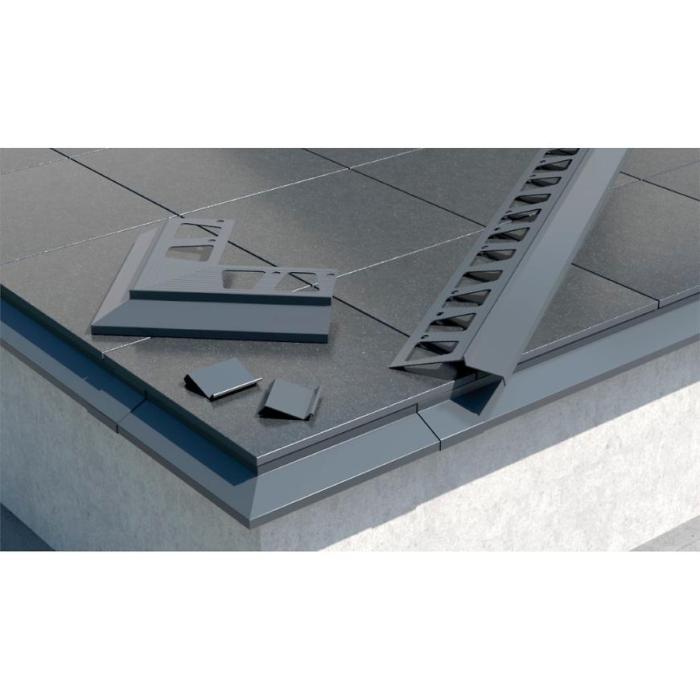 Profil balkonowy znajduje zastosowanie na balkonach i tarasach, gdzie ułożone są posadzki z materiałów ceramicznych. Produkt wykonany jest z aluminium (odporny na korozję i czynniki atmosferyczne) i pozwala ochronić balkon i elewację budynku przed powstawaniem zacieków oraz wykwitów. Do balkonowego profilu okapowego dedykowane są narożniki zewnętrzne 90° oraz łączniki. Do wyboru trzy kolory jasny szary, ciemny szary i brązowy.