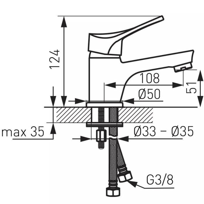 Bateria umywalkowa w kolorze chromu wykonana z mosiądzu.