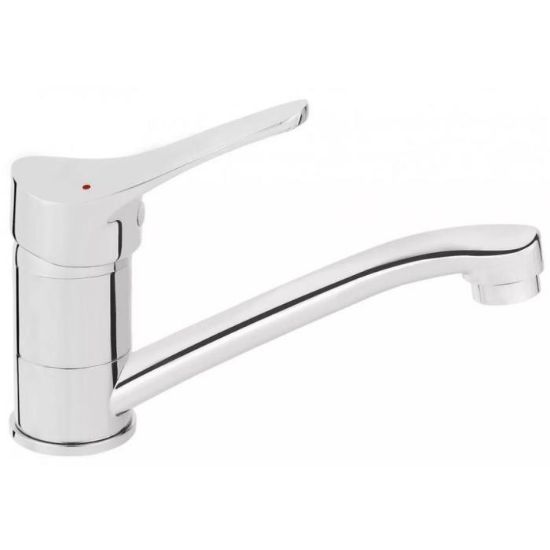 Bateria umywalkowa obrotowa w kolorze chromu wykonana z mosiądzu. Posiada ruchomą wlewkę.