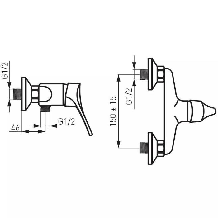Bateria natryskowa w kolorze chromu wykonana z mosiądzu.