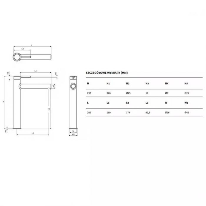 Bateria umywalkowa wysoka Pi czarny mat