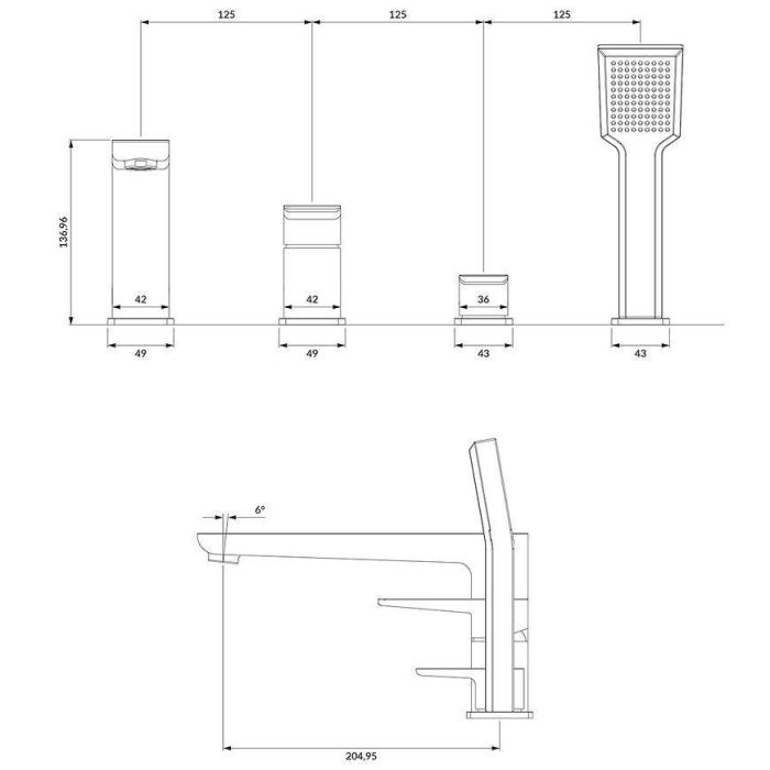 bateria wannowa 4-otworowa