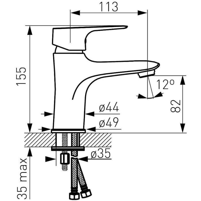 Bateria umywalkowa w kolorze chromu wykonana z mosiadzu. Posiada ceramiczną głowicę.