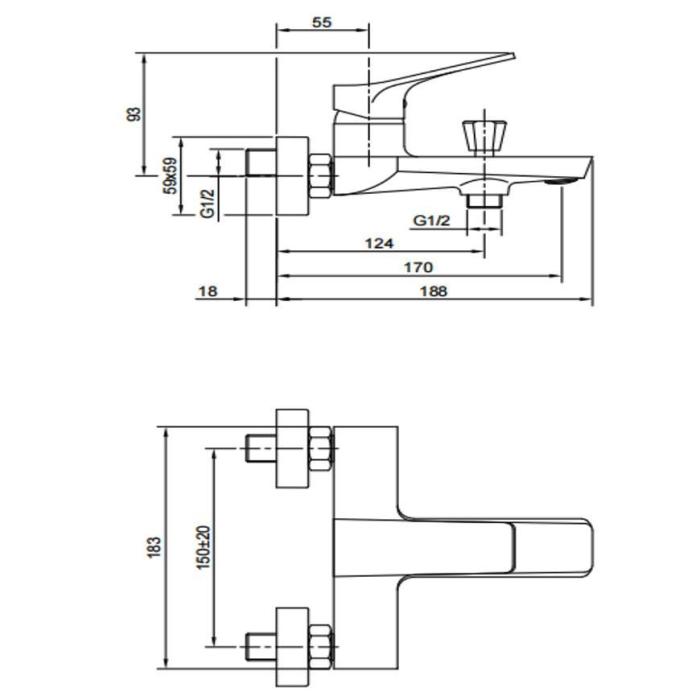 dwuotworowy naścienny