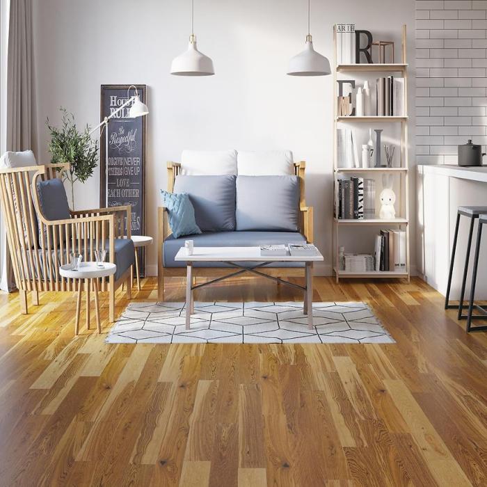 Trwała i odporna deska podłogowa Barlinek Dąb Vintage wykonana z drewna doskonale sprawdzi się w większości aranżacji. Dzięki swoim naturalnym właściwością nie przyciąga kurzu dlatego jest odpowiednia dla alergików. Idelanie tłumi hałas. Nada pomieszczeniu ponadczasowego i ciepłego wyglądu.