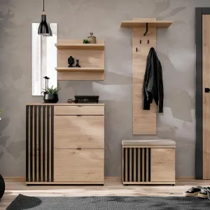 Garderoba Milo 140 lemele dąb wotan/czarny/lustro