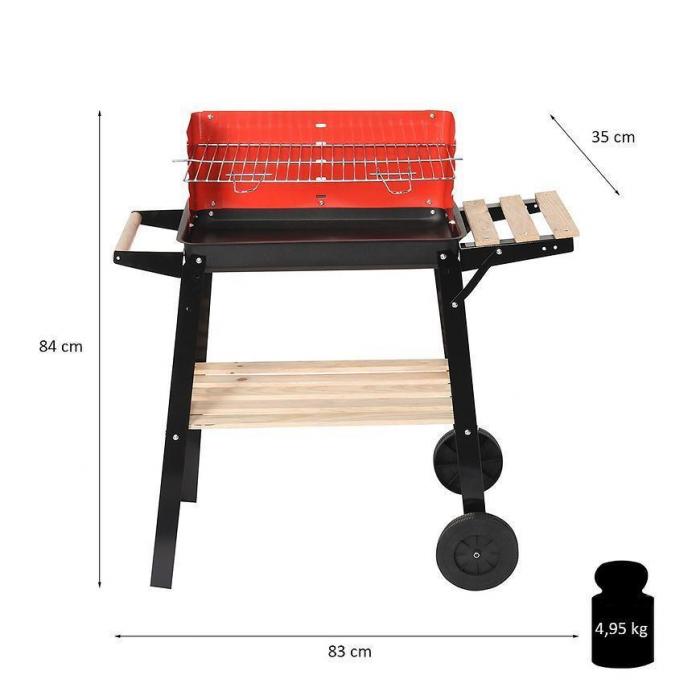 Grill został wyposażony w kółka, co znacznie ułatwi przenoszenie go w inne miejsce. Wysokość głównego grilla jest regulowana.