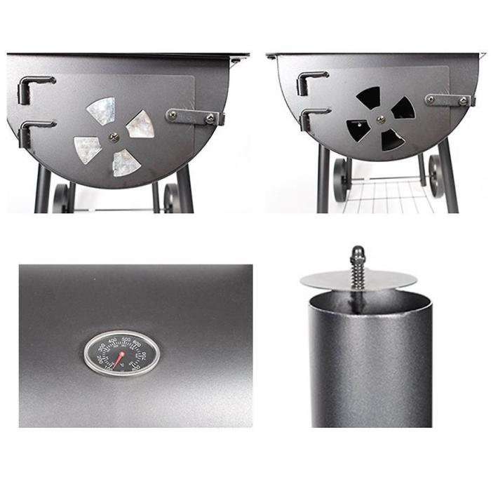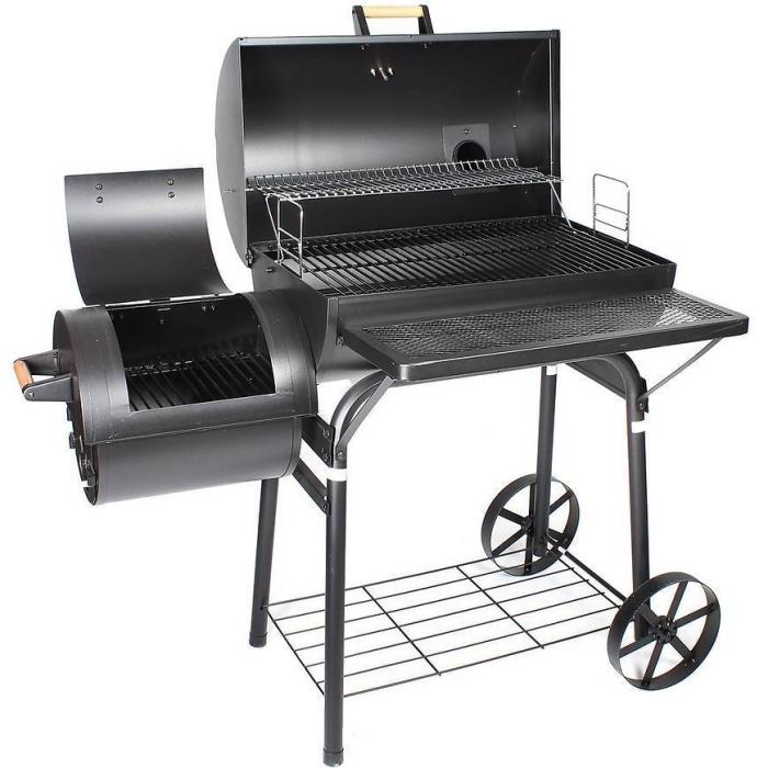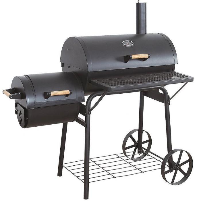 Grill lokomotywa z osobną komorą do wędzenia umożliwia przygotowywanie potraw bezpośrednio nad żarem jak i w komorze do wędzenia.