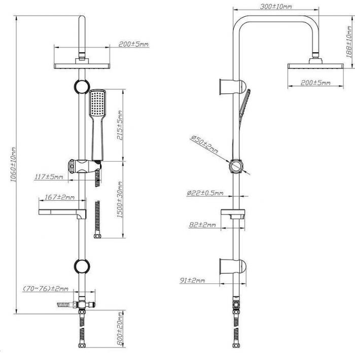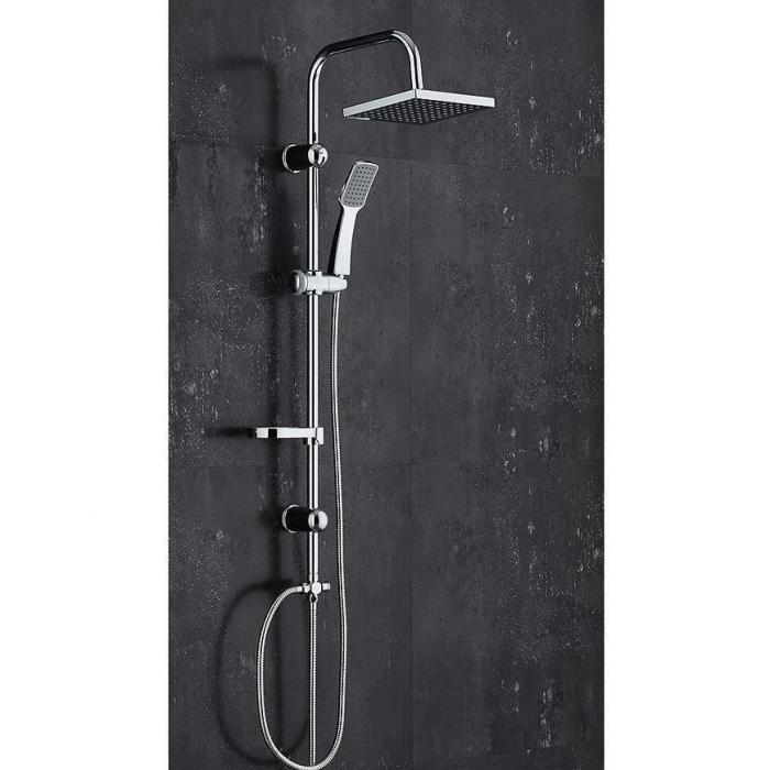 Hades system natryskowy z deszczownicą. Powierzchnia chromowana, wykonana m.in. z tworzywa sztucznego i metalu. Kolumna posiada rączkę natryskową, z której wydobywać się może 1 rodzaj strumienia. Kolumnę należy zamontować naściennie.