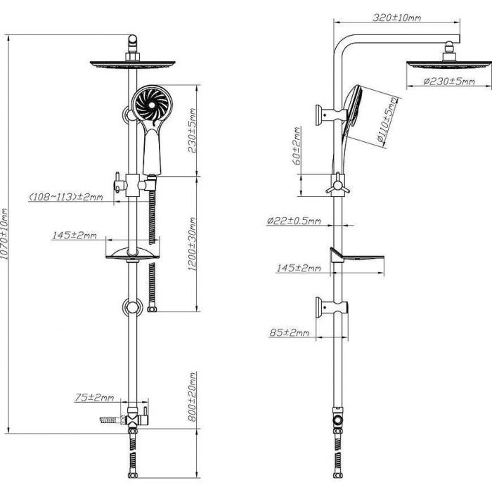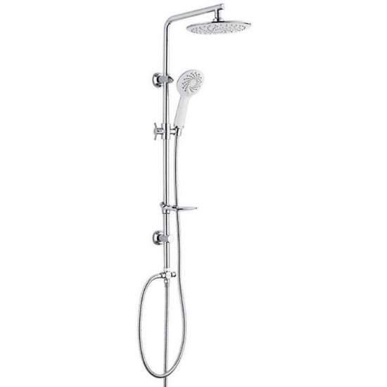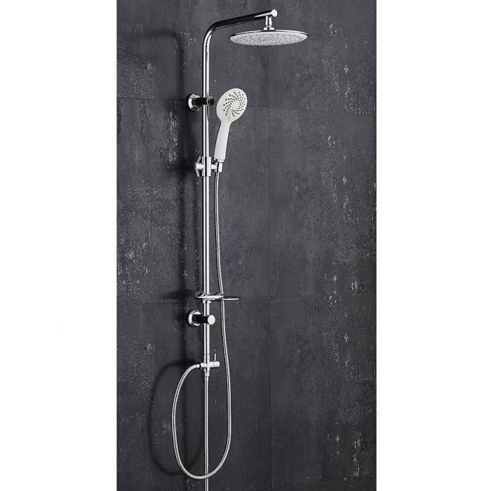 Honos system natryskowy z deszczownicą. Powierzchnia chromowana, wykonana m.in. z tworzywa sztucznego i metalu. Kolumna posiada rączkę natryskową, z której wydobywać się mogą 2 rodzaje strumieni. Kolumnę należy zamontować naściennie.