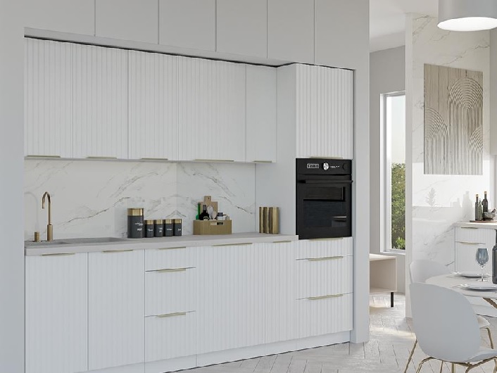 Kuchnia Tuluza wyróżnia się subtelną, a jednocześnie wyrazistą stylistyką. Jej jasna kolorystyka doskonale rozjaśnia wnętrze, nadając mu przytulny i przestronny charakter. Matowe wykończenie frontów dodaje elegancji i podkreśla wysoką jakość zastosowanych materiałów.