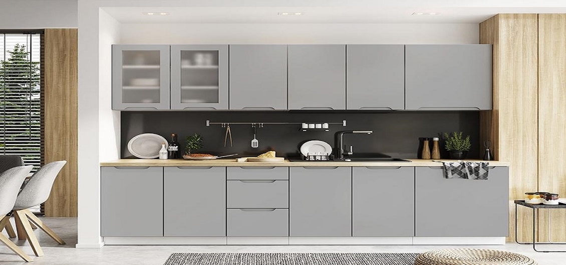 Delikatny, jasny odcień szarości dodaje kuchni lekkości i elegancji. Zarówno fronty, jak i korpusy mebli mają matowe wykończenie, co nadaje całości nowoczesnego, stonowanego charakteru. To idealne rozwiązanie dla tych, którzy cenią sobie minimalistyczny design.