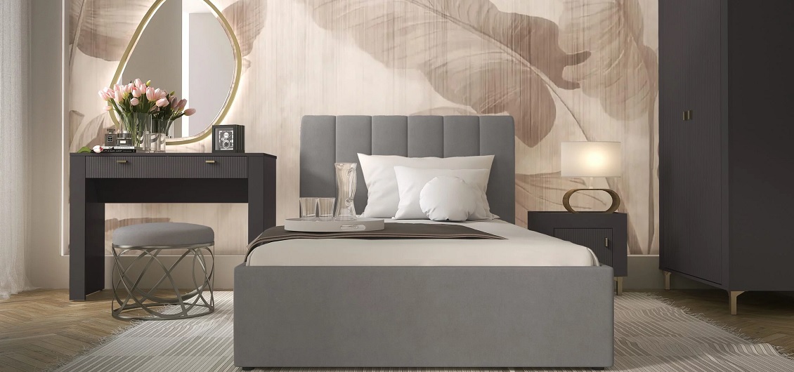 Kolekcja Mossa oferuje szeroki wybór mebli, które doskonale sprawdzą się w każdej sypialni. W jej skład wchodzą toaletka, szafka nocna, szafy dwudrzwiowe i trzydrzwiowe (w tym jedna z lustrem), a także tapicerowane łóżka o szerokości 120 cm lub 160 cm. Łóżka dostępne są w dwóch modnych kolorach – beżowym i popielatym, a w komplecie znajdują się stelaże. Do łóżek należy dokupić materac, co pozwala na pełne dostosowanie sypialni do własnych preferencji.
