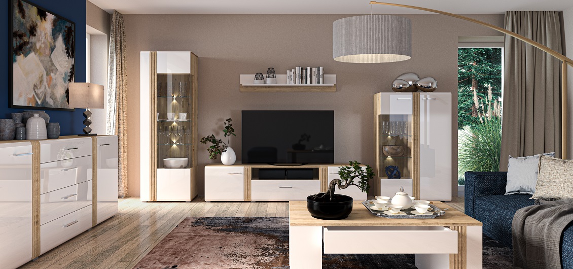 Dzięki uniwersalnej kolorystyce i klasycznej formie, system Adagio sprawdzi się w salonie, jadalni czy pokoju dziennym, wprowadzając do wnętrza harmonię, przytulność i wyrafinowany charakter. To idealne rozwiązanie dla tych, którzy szukają stylowych, funkcjonalnych i trwałych mebli, które podkreślą elegancję ich wnętrza.