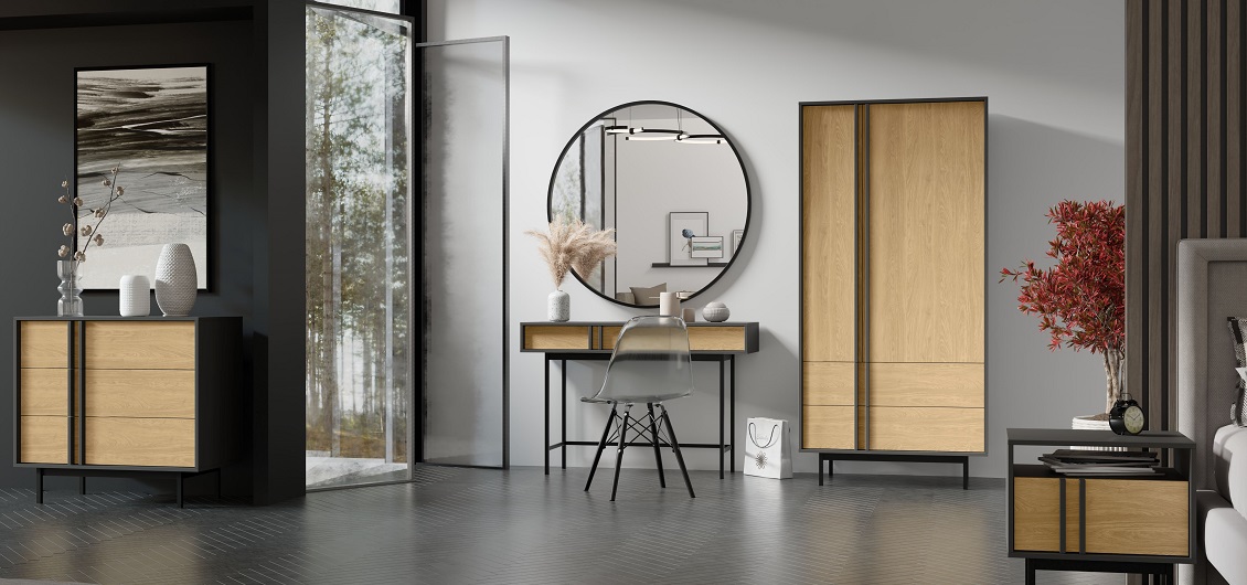 Kolekcja Alsy to połączenie naturalnego uroku drewna z nowoczesnym designem. Wysokie metalowe nóżki, matowe wykończenie i kontrastowe zestawienie dębu olejowanego z antracytem sprawiają, że wnętrze nabiera wyrazistości, a jednocześnie pozostaje przytulne i eleganckie. To wybór dla osób, które cenią prostotę formy, trwałość i estetykę na lata.