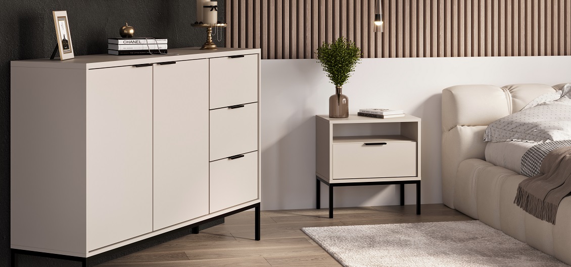 Kolekcja mebli Austin to doskonały wybór dla osób ceniących nowoczesny styl i elegancję. Jasna kolorystyka z dominującym dekorem kaszmir, wzbogacona o czarne akcenty w postaci uchwytów oraz ramy z nóżkami, nadaje wnętrzu wyrafinowanego charakteru. Fronty i korpusy w matowym wykończeniu podkreślają minimalistyczny design, który harmonijnie komponuje się zarówno z klasycznymi, jak i nowoczesnymi aranżacjami.