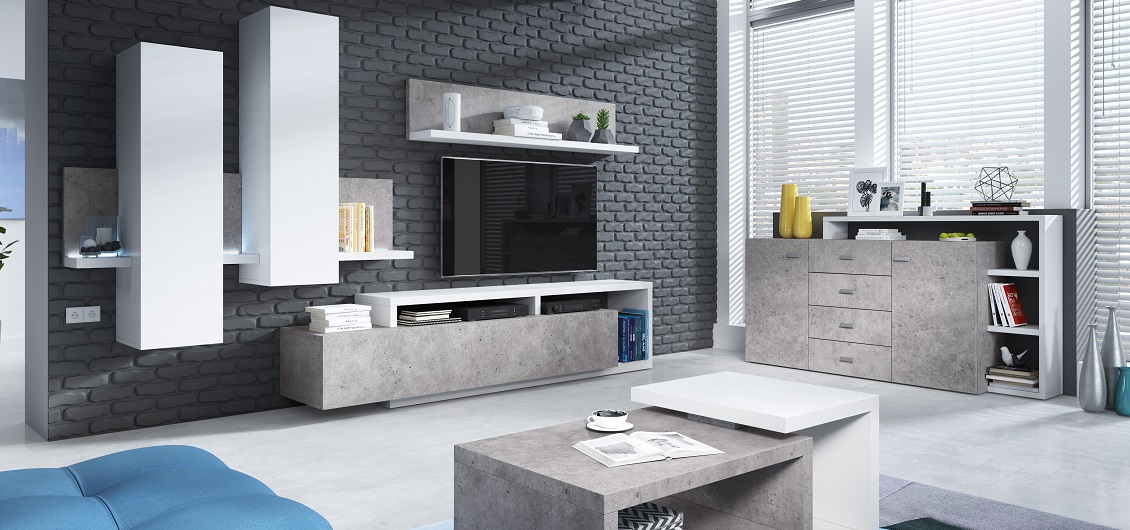Kolekcja mebli do pokoju dziennego Bota to doskonały wybór dla tych, którzy cenią sobie designerski styl i funkcjonalność. Kontrast między białym matem, a kolorem beton colorado tworzy wyjątkowy, nowoczesny charakter kolekcji. Bez względu na wielkość i układ Twojego pokoju dziennego, meble Bota pomogą Ci zagospodarować miejsce i utrzymać porządek w oryginalny i atrakcyjny sposób. Gotowy zestaw mebli na ścianę sprawia, że urządzenie wnętrza staje się łatwe i przyjemne. To kolekcja, która wniesie świeży powiew designerskiego stylu do Twojego domu.