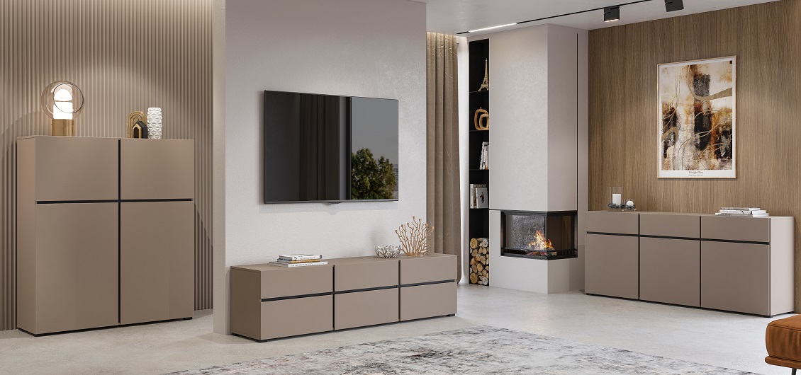 Kolekcja Cross Congo/Czarny to stylowe i funkcjonalne meble do salonu, które łączą elegancję z nowoczesnym designem. Wyraziste połączenie ciepłego dekoru Congo z głęboką czernią nadaje wnętrzu wyjątkowego charakteru, tworząc harmonijną i przytulną przestrzeń. Naturalny odcień drewna przełamany ciemnymi akcentami podkreśla industrialny styl kolekcji, jednocześnie wprowadzając do wnętrza elegancję i ponadczasowy wygląd.