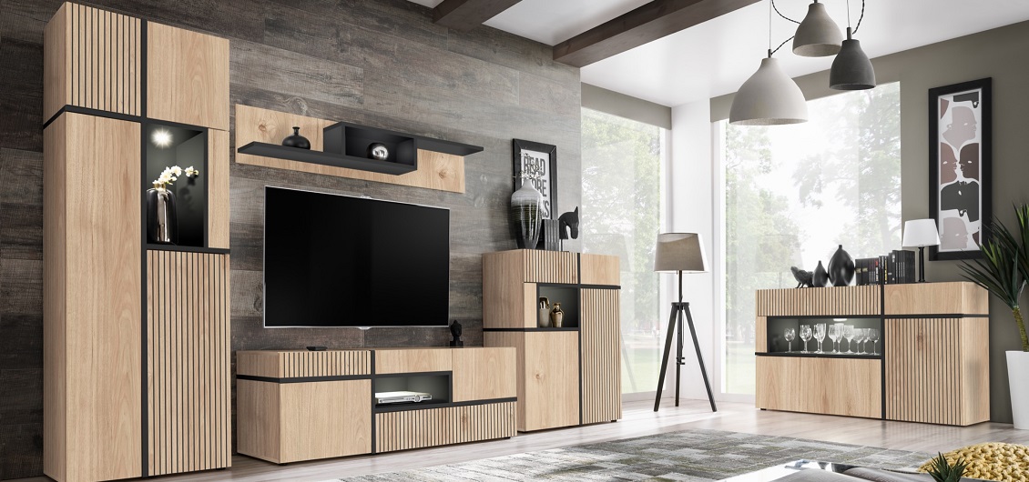 Nowoczesny charakter kolekcji podkreślają eleganckie detale i wykończenie, które nadają meblom lekkości i harmonii. Przemyślane rozwiązania konstrukcyjne zapewniają wygodne przechowywanie, co sprawia, że salon staje się nie tylko stylowy, ale również uporządkowany i praktyczny. Komody, witryny, szafki RTV i półki oferują wiele miejsca na najpotrzebniejsze rzeczy, jednocześnie podkreślając nowoczesny charakter wnętrza.