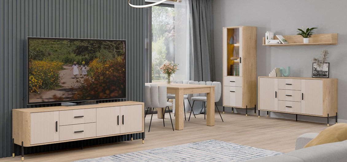 Dzięki różnorodności brył, kolekcja Dante umożliwia aranżację wielu pomieszczeń w spójnym stylu. Pojemne komody, witryny, stoliki czy szafy pozwalają na praktyczne przechowywanie i elegancką ekspozycję dekoracji. Cichy domyk, solidne wykonanie oraz wybór uchwytów sprawiają, że Dante to kolekcja, która łączy wygodę codziennego użytkowania z wyjątkowym stylem.