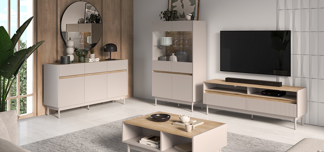 Meble z kolekcji Dunea zostały zaprojektowane tak, by łączyć nowoczesną estetykę z codziennym komfortem użytkowania. Ich uniwersalna kolorystyka daje szerokie możliwości aranżacyjne – kolekcja świetnie współgra z dodatkami w neutralnych tonach, ale stanowi również doskonałe tło dla bardziej wyrazistych akcentów dekoracyjnych.