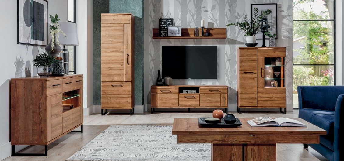 Kolekcja Ivo to połączenie elegancji, trwałości i nowoczesnego designu. Industrialne detale w połączeniu z ciepłym dekorem drewna sprawiają, że wnętrze nabiera wyjątkowego charakteru. Odkryj nowoczesne rozwiązania i urządź swój salon oraz jadalnię w stylu, który przyciąga wzrok i zachwyca funkcjonalnością!