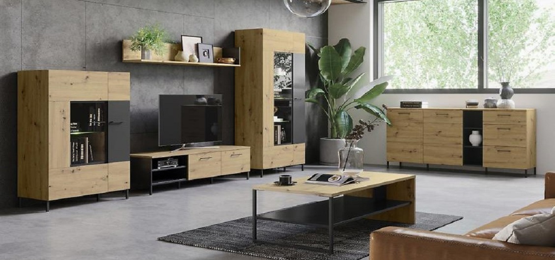 Kolekcja mebli do pokoju dziennego Lucas to połączenie nowoczesnego designu z industrialnym urokiem, tworzące harmonijną i funkcjonalną przestrzeń w Twoim salonie. Wykonane z wysokiej jakości płyty wiórowej laminowanej, meble z tej serii zapewniają nie tylko trwałość, ale także łatwość w utrzymaniu czystości, co czyni je doskonałym wyborem do każdego domu.