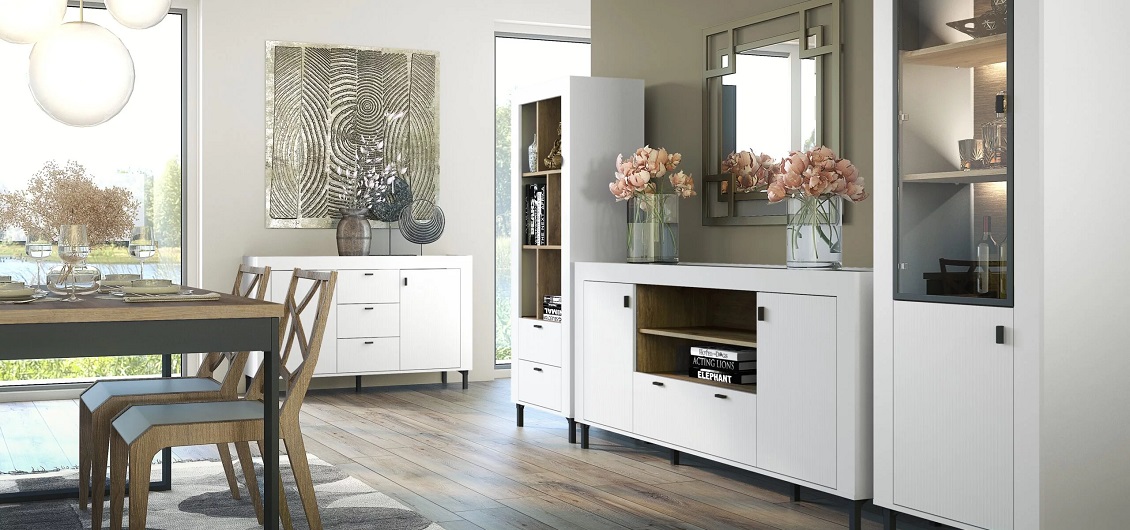 Komoda dwudrzwiowa Mossa MO7 z szufladą dąb whisky/biały mat