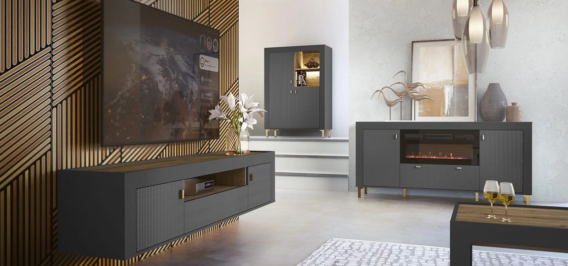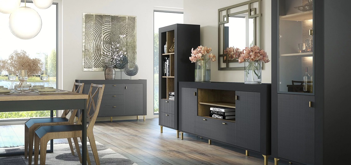 Komoda dwudrzwiowa Mossa MO7 z szufladą dąb whisky/czarny mat