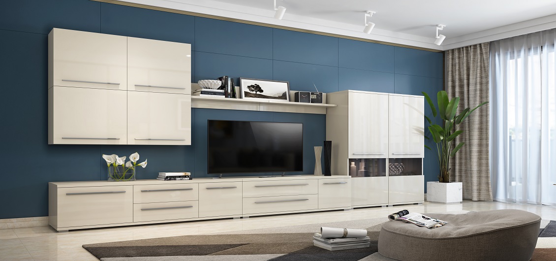 Kolekcja Piano w beżowym dekorze, z frontami o błyszczącym wykończeniu, emanuje nowoczesnym wdziękiem. Kontrast między połyskiem frontów, a matowym wykończeniem korpusów tworzy efektowny efekt wizualny, który dodaje meblom wyjątkowego charakteru.