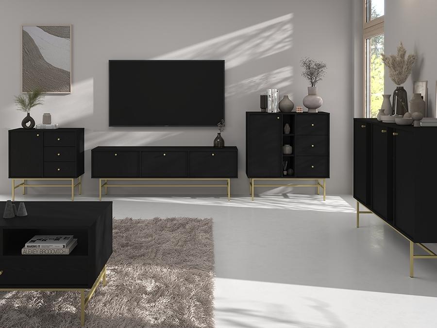 Każdy element z kolekcji Tokyo 3, od pojemnych szaf i komód po eleganckie stoliki, został zaprojektowany z myślą o funkcjonalności i estetyce. Matowe wykończenie frontów i korpusów zapewnia elegancję i podkreśla nowoczesną formę mebli, idealnie komponując się z industrialnymi i modernistycznymi wnętrzami. Czerń i grafit w matowym wydaniu to wybór pełen klasy, który nadaje wnętrzom głębi i pozwala na różnorodne aranżacje, pasując zarówno do minimalistycznych, jak i eklektycznych stylizacji.