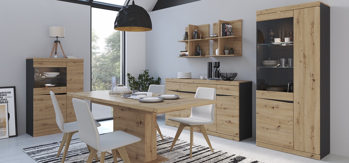 Kolekcja mebli Turino to doskonały wybór dla osób ceniących nowoczesny styl i wysoką jakość wykonania. Dostępność w wybarwieniu dębu artisan w połączeniu z antracytem daje wiele możliwości aranżacyjnych. Bezuchwytowy system otwierania, ciche domykanie szuflad, a także wykorzystanie wysokiej jakości materiałów i nowoczesnego designu sprawiają, że meble Turino są nie tylko estetyczne, ale także funkcjonalne i praktyczne. Ta kompleksowa kolekcja mebli zapewnia różnorodne rozwiązania do przechowywania i organizacji przestrzeni, tworząc eleganckie i harmonijne wnętrza w pokoju dziennym lub salonie.