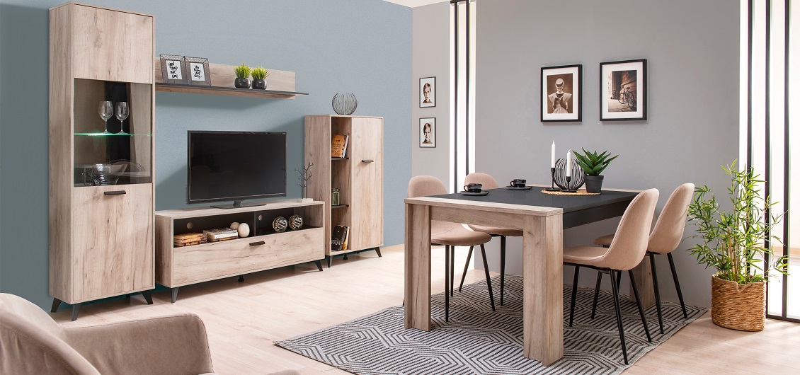 W skład kolekcji Umbria wchodzą różnorodne elementy, które pozwalają na stworzenie spójnej i funkcjonalnej aranżacji salonu: