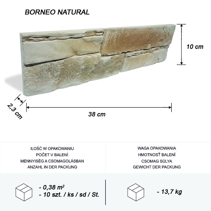 Kamień Betonowy Borneo Natural to nowoczesny element wykończeniowy, łączący dużą i drobną strukturę kamienną. Charakteryzuje się delikatną kolorystyką, która wprowadza harmonię do przestrzeni. Idealnie sprawdza się w różnych aranżacjach, zarówno wewnętrznych, jak i zewnętrznych, dodając elegancji i trwałości. Jego uniwersalny charakter pozwala na tworzenie interesujących kompozycji i aranżacji, które nadają wnętrzom nowoczesny i stylowy wygląd.