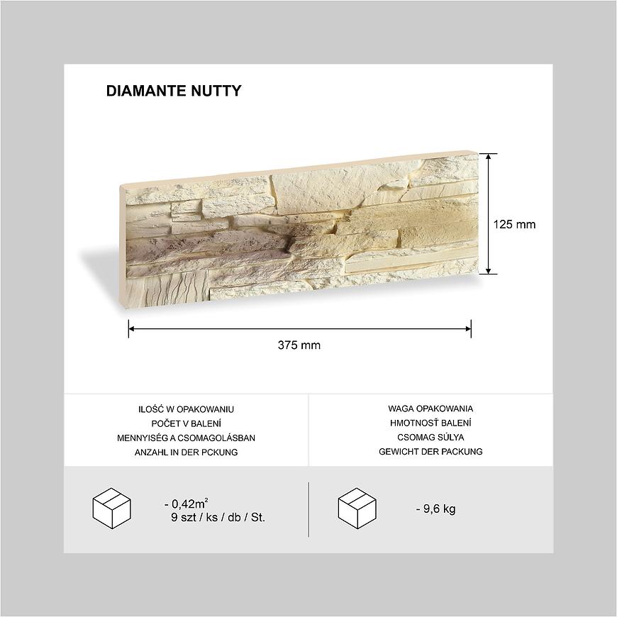 Kamień Betonowy Diamante Nutty to dekoracyjna płytka betonowa imitująca naturalny kamień, idealna do zastosowań wewnętrznych i zewnętrznych. Beżowy kolor nadaje wnętrzom ciepły i elegancki charakter, doskonale komponując się z różnymi stylami aranżacji.