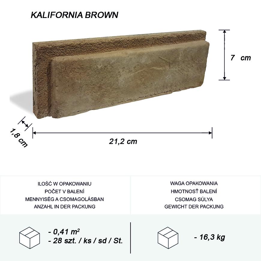 Kamień Betonowy Kalifornia Brown to dekoracyjna płytka elewacyjna, która doskonale imituje wygląd tradycyjnej cegły. Jego ciepły, brązowy kolor oraz struktura nadają przestrzeni przytulny i naturalny charakter.