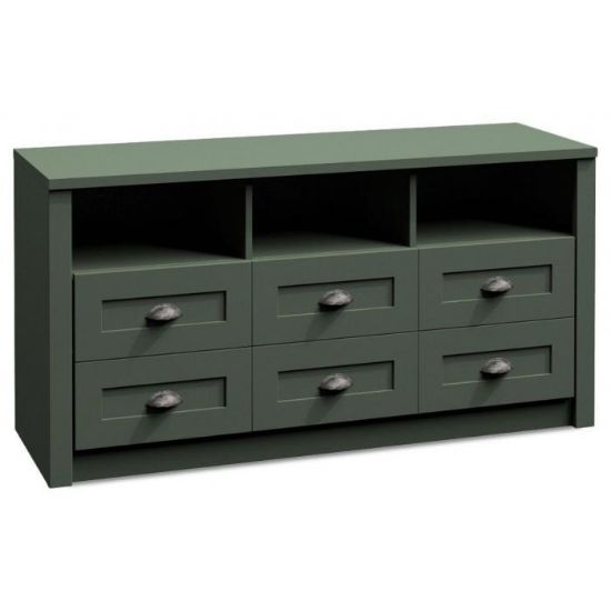 Kolekcja Prowansja z sześcioma szufladami dodatkowo pod blatem trzy otwarte półki to połączenie designu, klasy i stylu, świetnie wpisze się we wnętrza w stylu industrialnym czy prowansalskim, nadając im oryginalnego charakteru. Meble wykonane są z najwyższej jakości materiałów - płyta meblowa laminowana. Dzięki przemyślanej konstrukcji pozwolą zagospodarować maksymalną ilość miejsca. Uwagę z pewnością przykuwa staranne wykończenie, frezowane fronty, pełniące jednocześnie funkcję ozdobną, a także stylowe gałki w kolorze starego złota. Kolekcja z pewnością ożywi niejeden salon. Mebel do samodzielnego montażu.