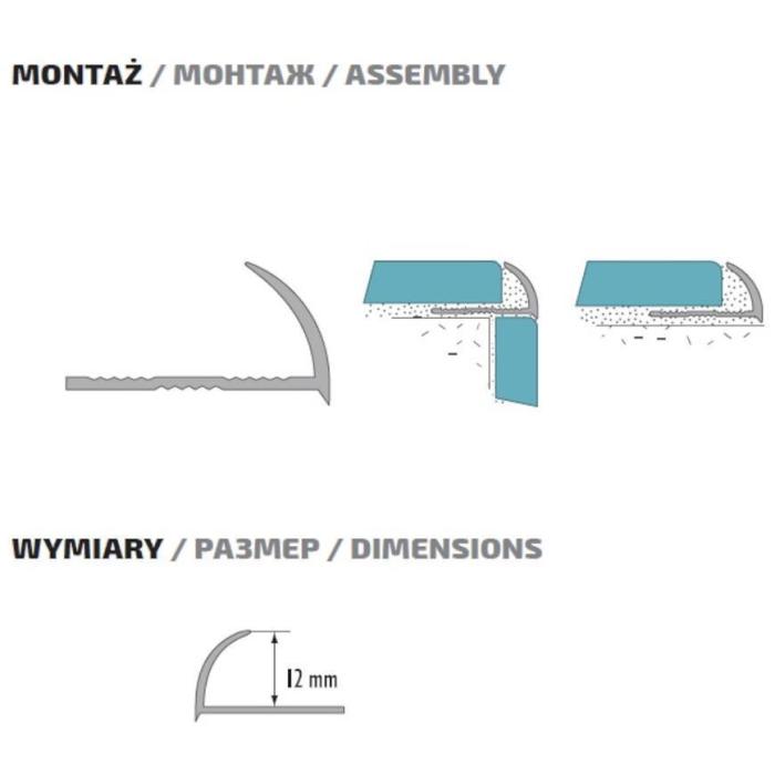 Listwa aluminiowa o długości 250 cm i szerokości 2.1 cm służy do zabezpieczania zewnętrznych naroży wyłożonych płytkami ceramicznymi.