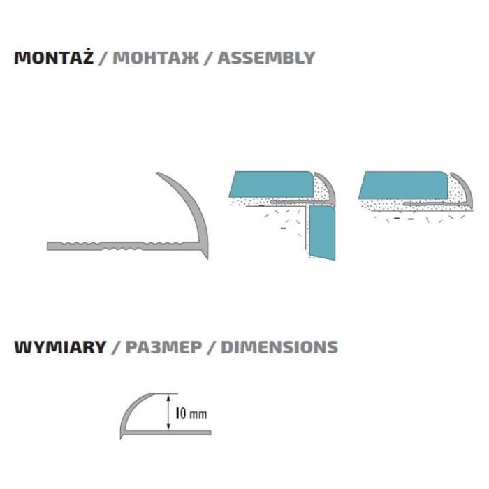 Listwa krawędziowa owalna o długości 250 cm i szerokości 1.9 cm służy do zabezpieczania zewnętrznych naroży wyłożonych płytkami ceramicznymi.