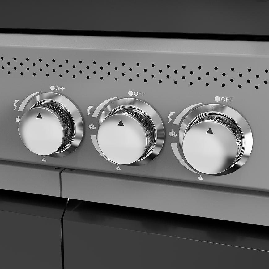 3 palniki główne i 1 palnik boczny o mocy 11,5 kW zapewniają szybkie rozgrzanie grilla i równomierne grillowanie potraw