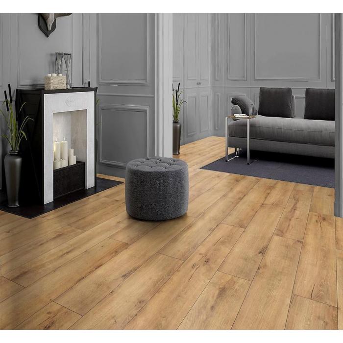 Panele podłogowe Dąb Denver to propozycja do pomieszczeń intensywnie uczęszczanych, jak biuro, korytarz czy kuchnia. Panele są wodoodporne, antypoślizgowe i można je kłaść na ogrzewanie podłogowe.