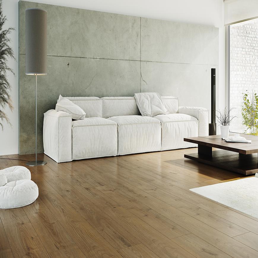 Panele podłogowe wykonane w kolorze Dąb Libra, to ciekawe i doskonałe rozwiązanie do pomieszczeń intensywnie użytkowanych np: biuro, korytarz, kuchnia. Posiadają standardowy click system przy montażu.