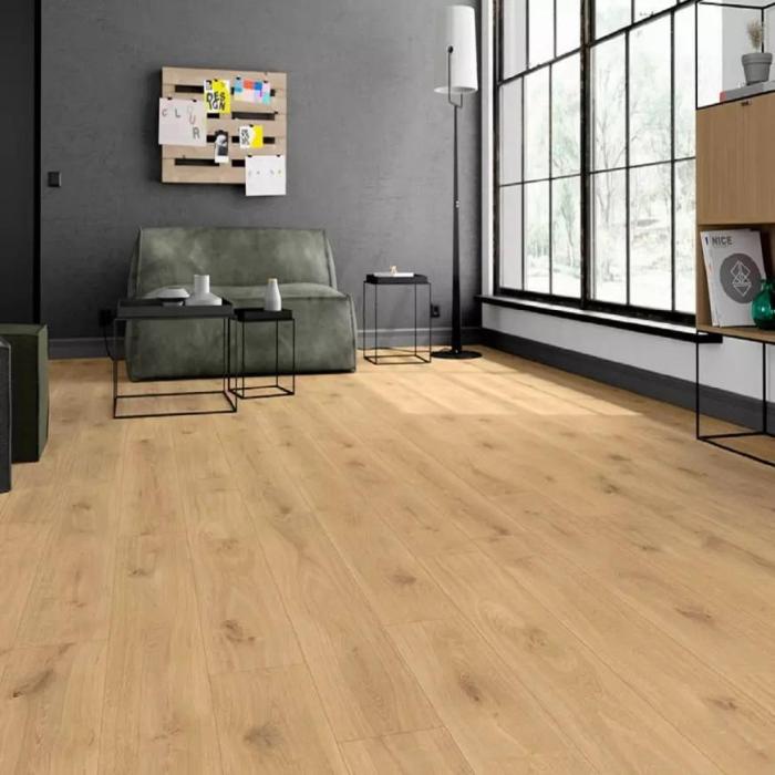 Panele podłogowe Dąb Monaco 8mm AC5 Room 4917 świetnie sprawdzą się w takich pomieszczeniach jak np: pokój dzienny, pokój dziecięcy, przedpokój. Posiadają szybki click system przy montażu.