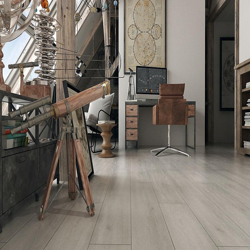 Panele podłogowe wykonane w kolorze Dąb Taurus, to ciekawe i doskonałe rozwiązanie do pomieszczeń intensywnie użytkowanych np: biuro, korytarz, kuchnia. Posiadają standardowy click system przy montażu.