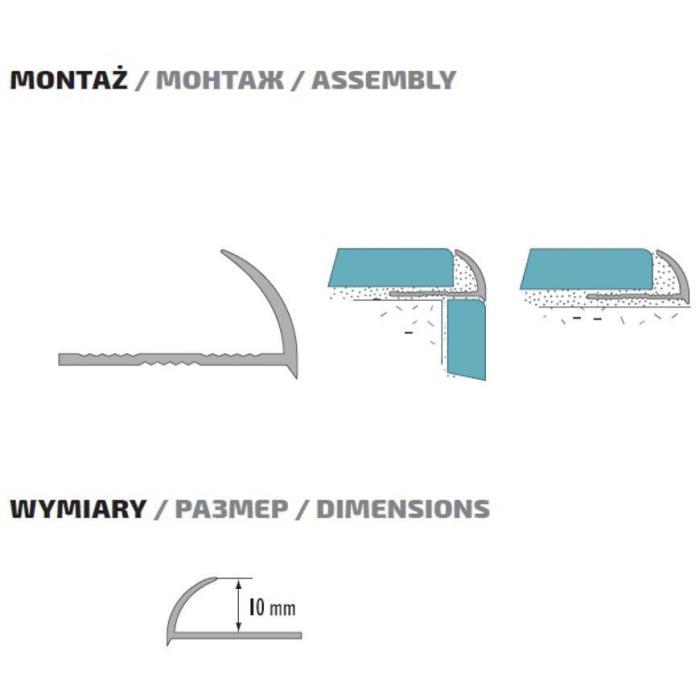 Listwa owalna o długości 250cm i szerokości 2,1 cm służy do zabezpieczania zewnętrznych naroży wyłożonych płytkami ceramicznymi.