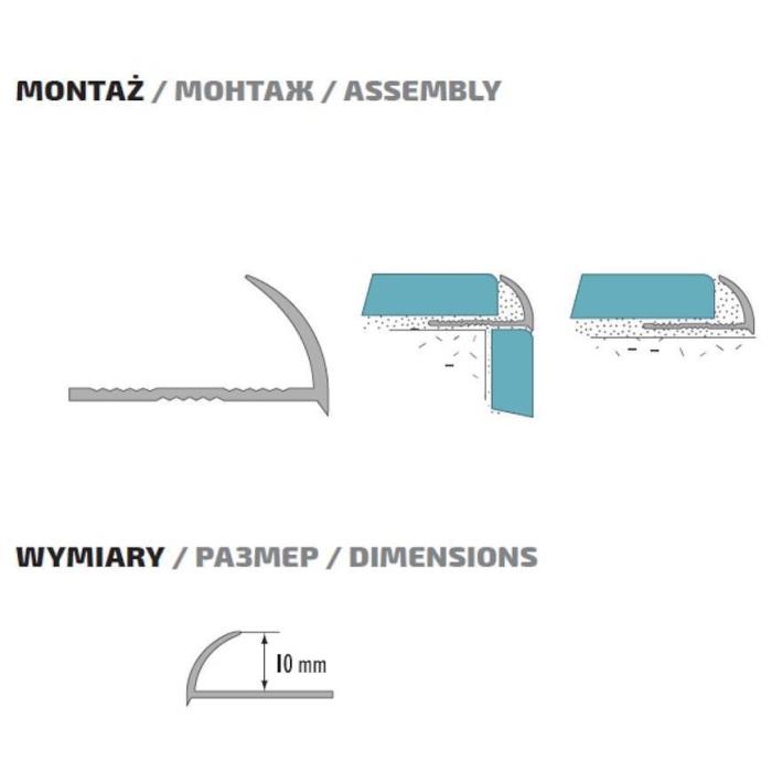 Profil krawędziowy o długości 250 cm i szerokości 2.1 cm służy do zabezpieczania zewnętrznych naroży wyłożonych płytkami ceramicznymi.