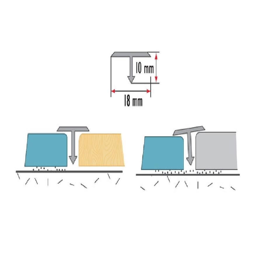 Profil T służy do wykończenia podłogi, poprzez łączenie powierzchni pokrytych płytkami ceramicznymi, drewnem lub panelami. Profil pozwala na estetyczne wykończenie powierzchni i zamaskowanie szczelin, również o łukowatych kształtach. Dodatkowo, profil pozwala niwelować niewielkie różnice wysokości powierzchni.