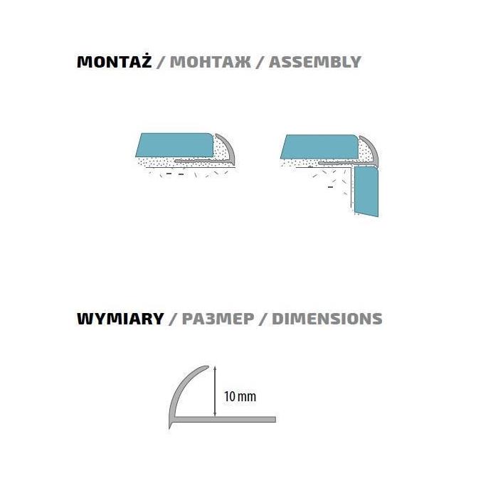 Profil zewnętrzny służy do zakończenia zewnętrznych naroży wyłożonych płytkami ceramicznymi. Jest wykończeniem zewnętrznych narożników ścian, bez fugowania czy też szlifowania. Chroni i zabezpiecza krawędzie płytek, zapewniając estetyczny wykończenie dzięki zaokrąglonemu kształtowi.