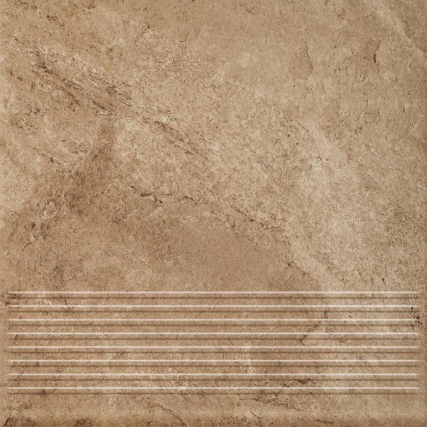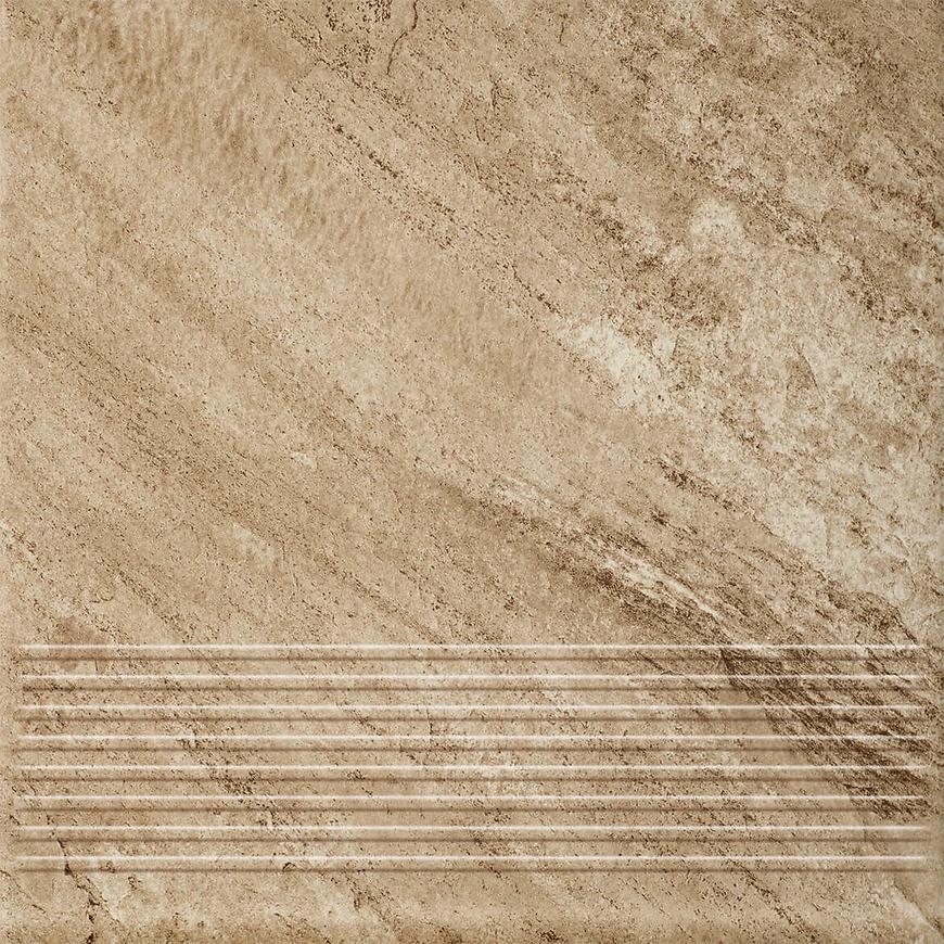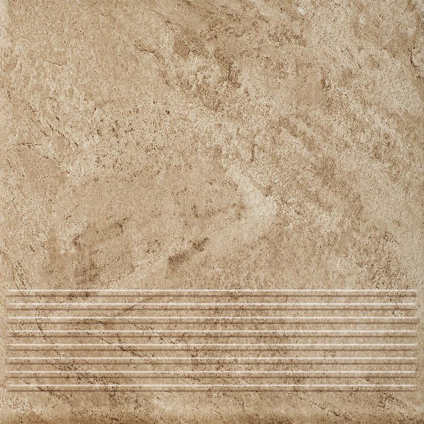 Stopnica Prosta Mattone Pietra Beige 30/30 to solidna klinkierowa stopnica o wymiarach 30 × 30 cm i grubości 0,85 cm. Jej matowa powierzchnia w odcieniu beżowym wiernie imituje naturalny kamień, wprowadzając elegancję i harmonię. Płytka jest mrozoodporna, posiada klasę ścieralności 4 oraz antypoślizgowość R10, co zapewnia trwałość i bezpieczeństwo użytkowania. Produkt sprzedawany w opakowaniach, idealny do estetycznego wykończenia stopni.