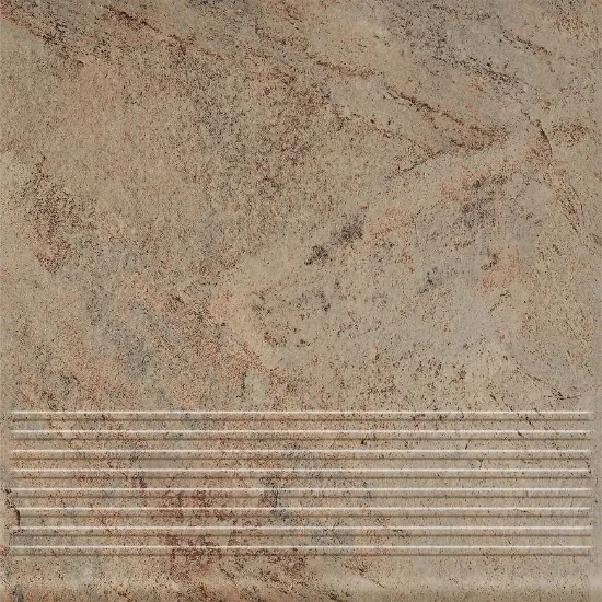 Stopnica Prosta Mattone Pietra Ochra 30/30 to płytka klinkierowa w brązowym kolorze, inspirowana naturalnym kamieniem. Ma wymiary 30 × 30 cm i grubość 0,85 cm, a jej matowa powierzchnia nadaje całości elegancki i stonowany wygląd. Stopnica jest mrozoodporna, posiada klasę ścieralności 4 oraz antypoślizgowość R10, co zapewnia trwałość i bezpieczeństwo użytkowania. Produkt sprzedawany w opakowaniach.